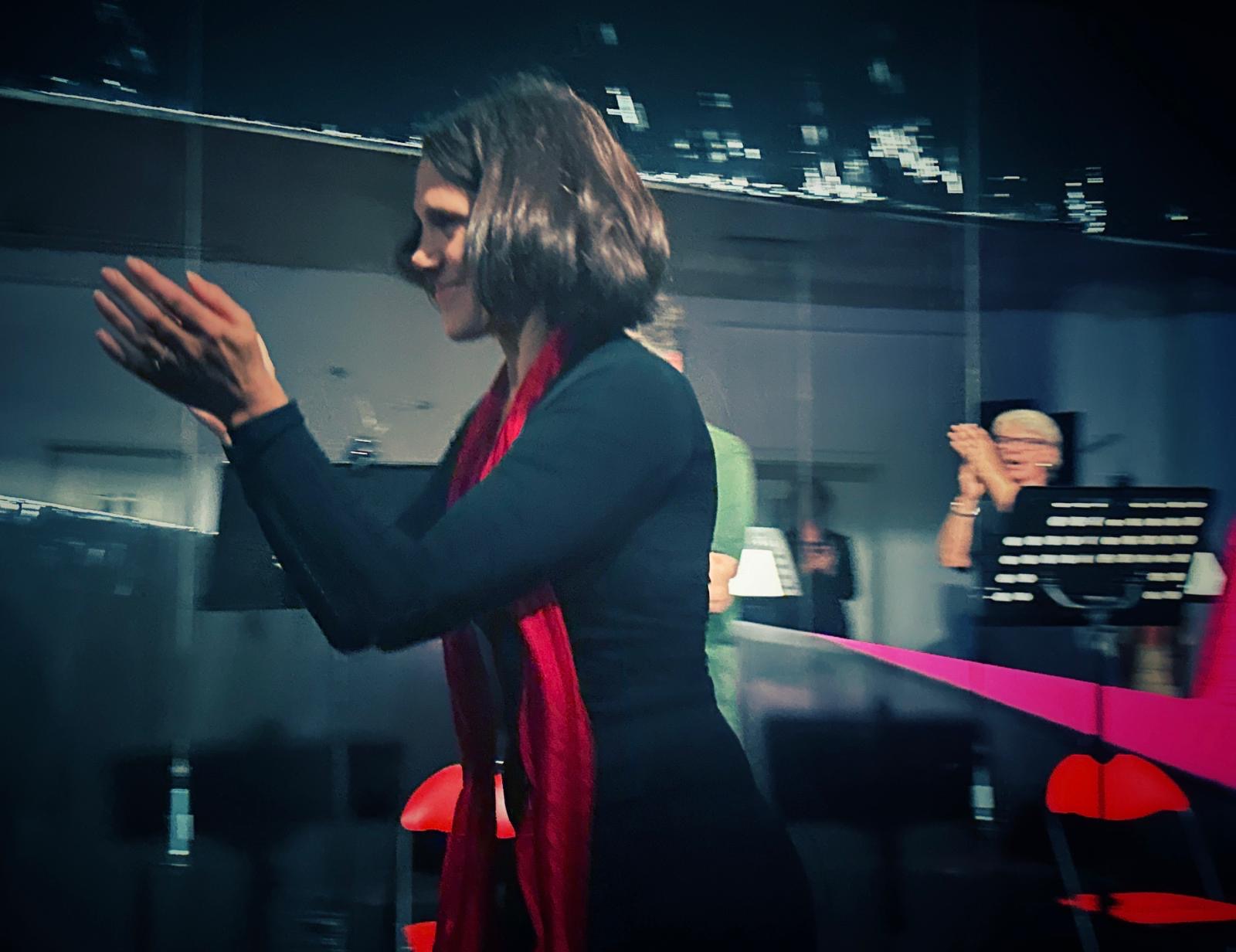 Wir haben mit dem Ensemble Auditiv Vokal Dresden und dem Komponisten/Dirigenten Alberto Arroyo geprobt